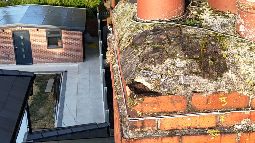 Examine the brickwork – does it look crumbly or weathered? Is the mortar between bricks intact, or can you see gaps? Are the chimney pots secure and upright? Most importantly, check the lead flashing around the base where the chimney meets the roof – lifted or cracked flashing is a major leak risk.